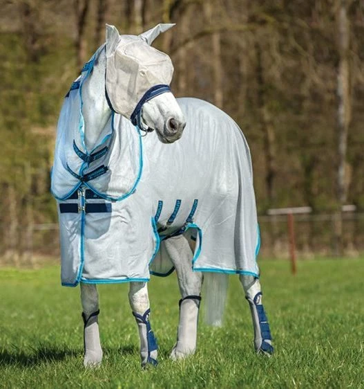 The Amigo Fly Buster is an excellent value rug with dual effectiveness to combat flies. This lightweight and breathable fly sheet is made from a knitted polyester fabric and is soft and durable. Treated with strong sun reflecting properties, this rug offers great protection for the spring summer season.